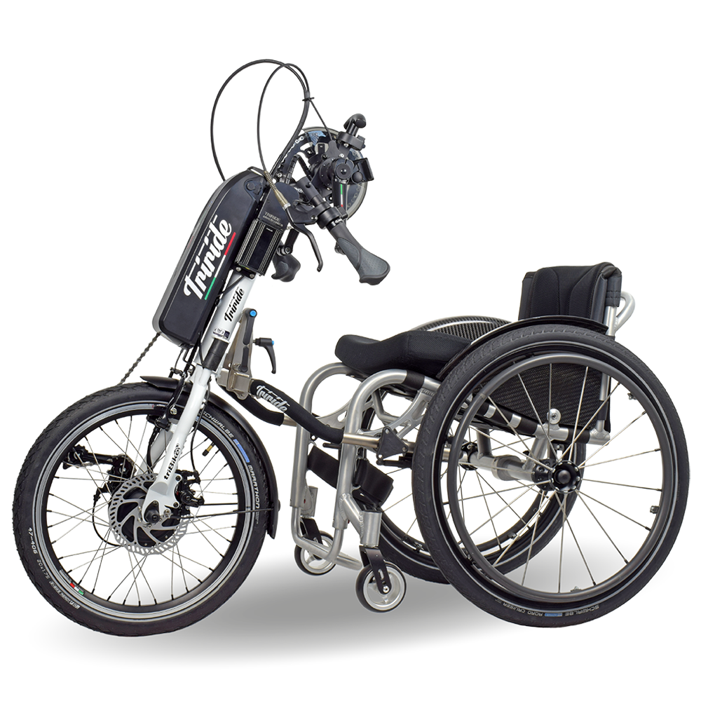 By turning your manual wheelchair into an electric-powered device, the Triride wheelchair add-on makes navigating everyday challenges easier than ever.
