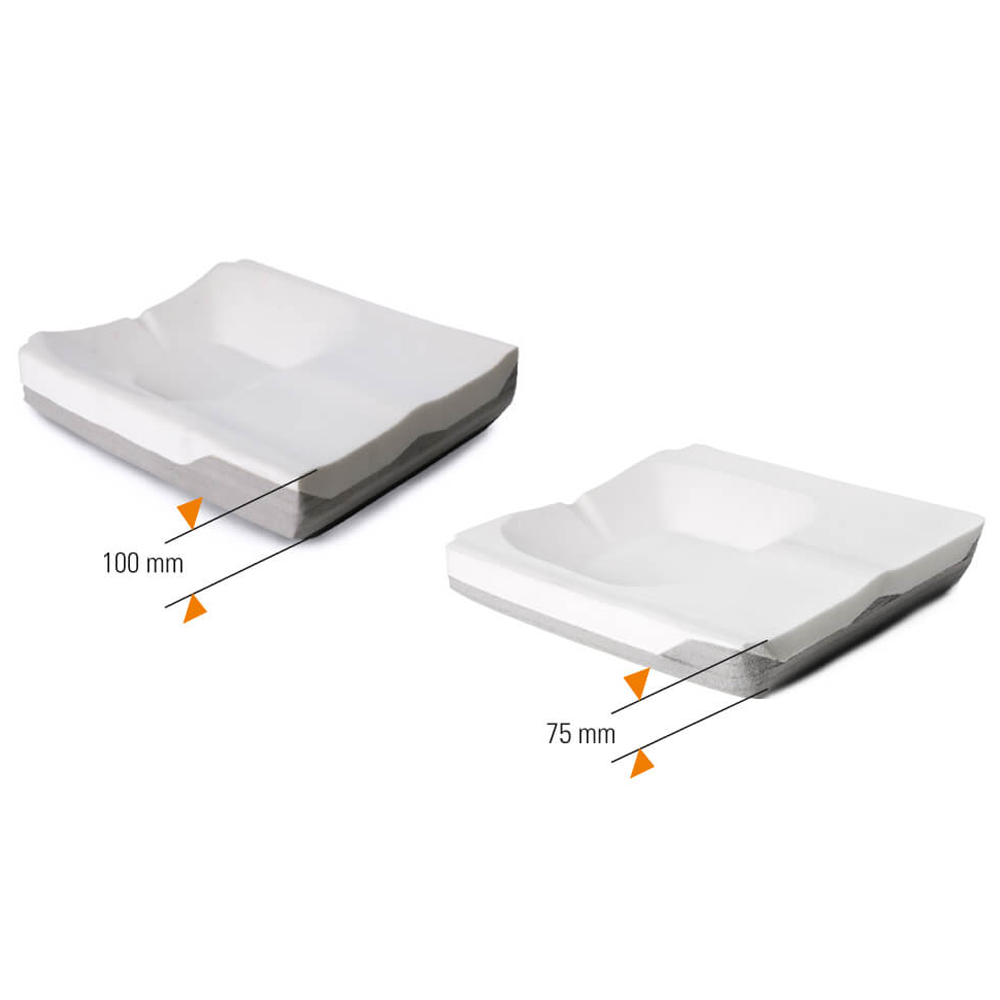 The JAY Balance has a comfortably supportive foundation due to a layer of firm contoured closed-cell moulded foam covered in a soft open-cell upper layer. The base is available in a low profile standard 75mm height or a 100mm height, for deeper immersion and greater pelvic suspension. Both sizes feature a pelvic loading area (PLA) design based on anthropometric data for a stable, accurate fit. This PLA has rear shaping to prevent fluid migration and a soft foam top layer at the front for ischial tuberosity immersion and comfort, even in when there may be some posterior pelvic tilt. PLA obliquity inserts of 1 or 2 cm are available for managing oblique pelvic postures, in addition to stability from inner JAY Balance cover lateral pelvic positioners.
