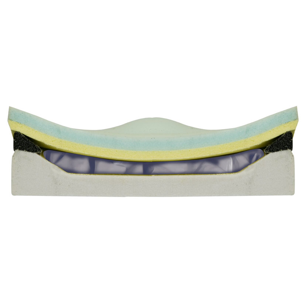 The 2″ deep anatomically shaped seat well increases pelvic and thigh stability and re-distributes pressure. This key feature is unique to JAY and separates it from other conventional medium to high risk skin protection cushions. The front and rear well walls have been designed specifically to prevent fluid migration and also reduce pressure around the sacral area. This design also helps keep the fluid where it is needed. Conventional medium risk cushions often struggle to prevent ‘bottoming out’ due to fluid migration when the seat is tilted.