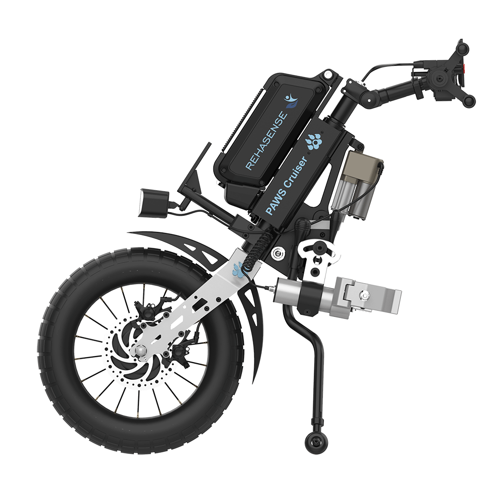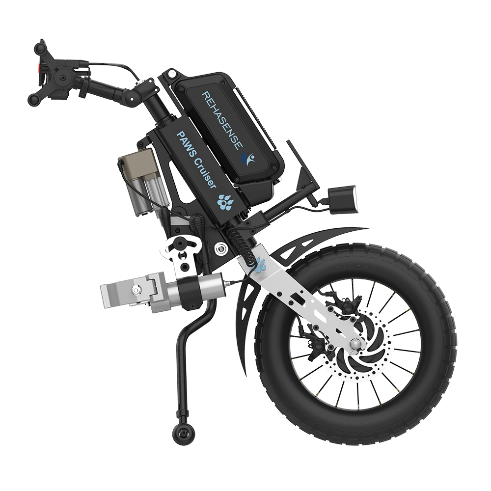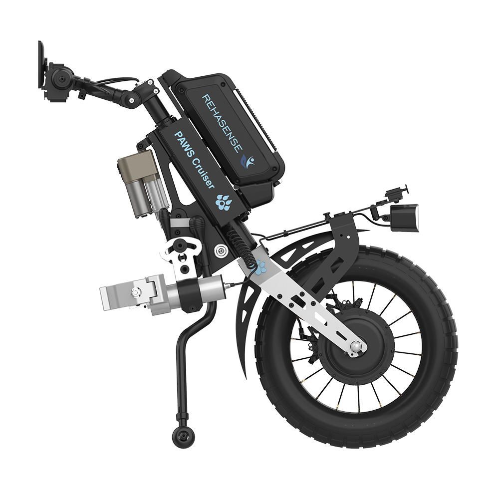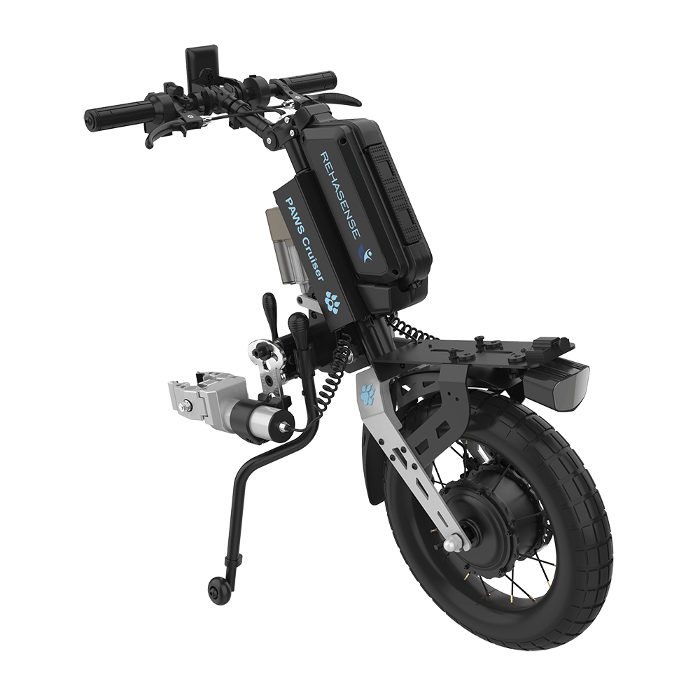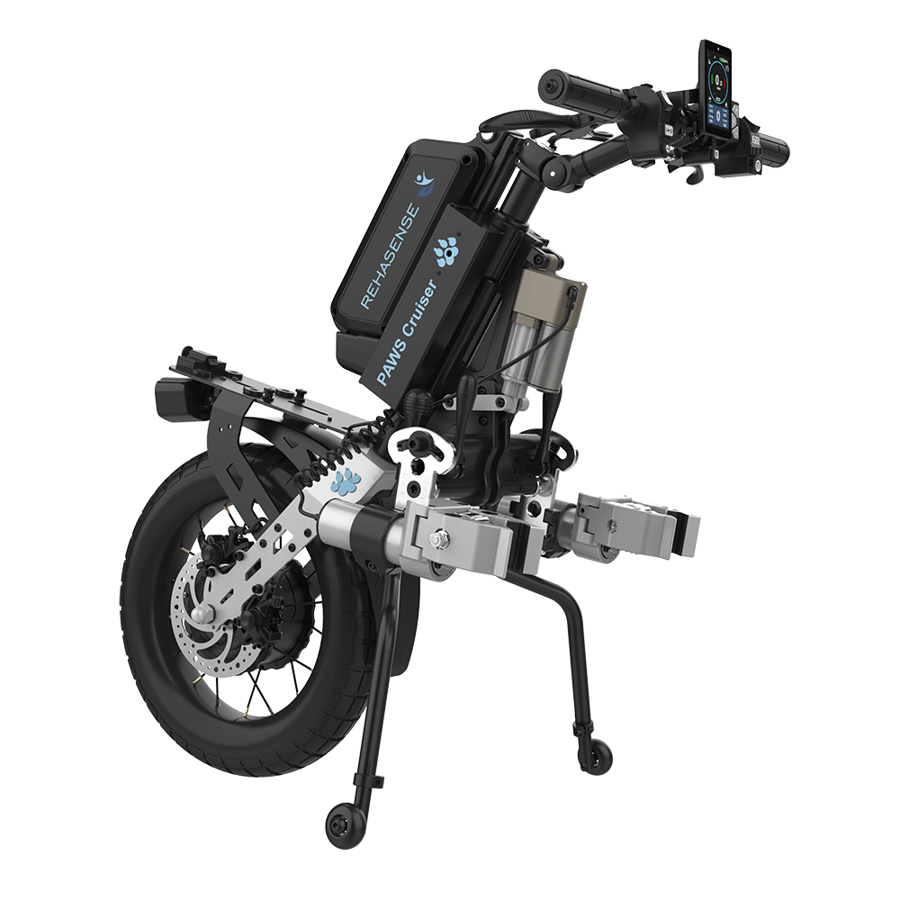 Rehasense’s new range of PAWS fit to the front of almost every active wheelchair on the market that has a fixed front frame rather than swing-away leg rests. They incorporate built-in motors and lithium batteries, as well as intelligent controls.