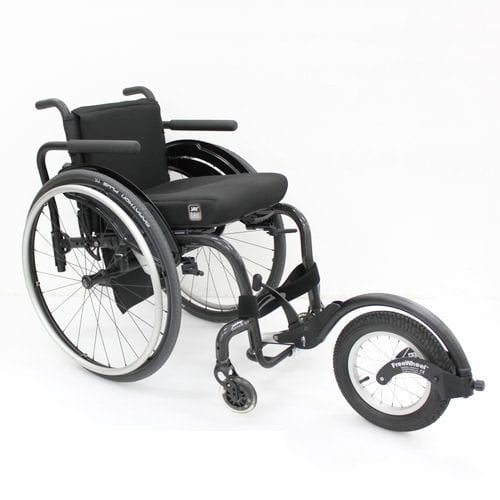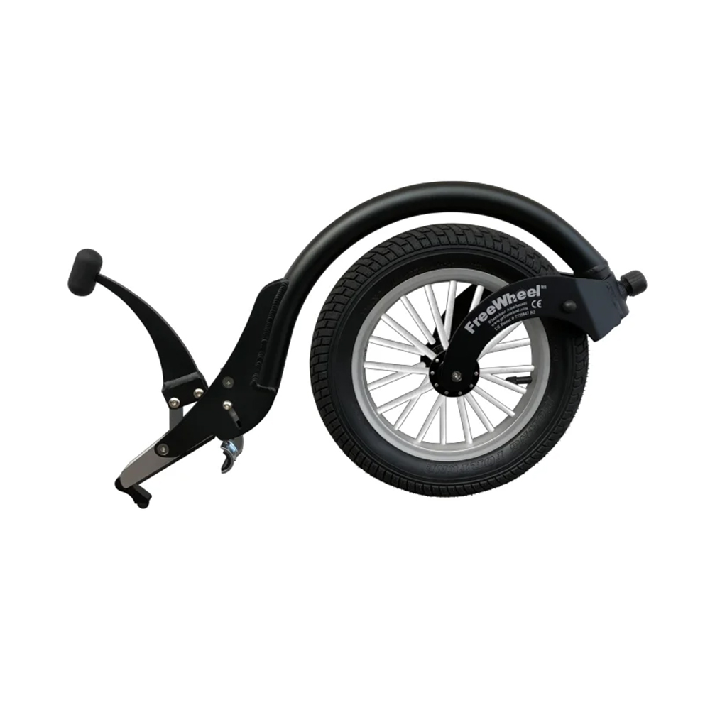 The FreeWheel Wheelchair Attachment is a unique accessory designed to enhance the mobility and functionality of manual wheelchairs. It is designed to be attached to the front of a manual wheelchair, providing additional support and stability when navigating over uneven terrain.