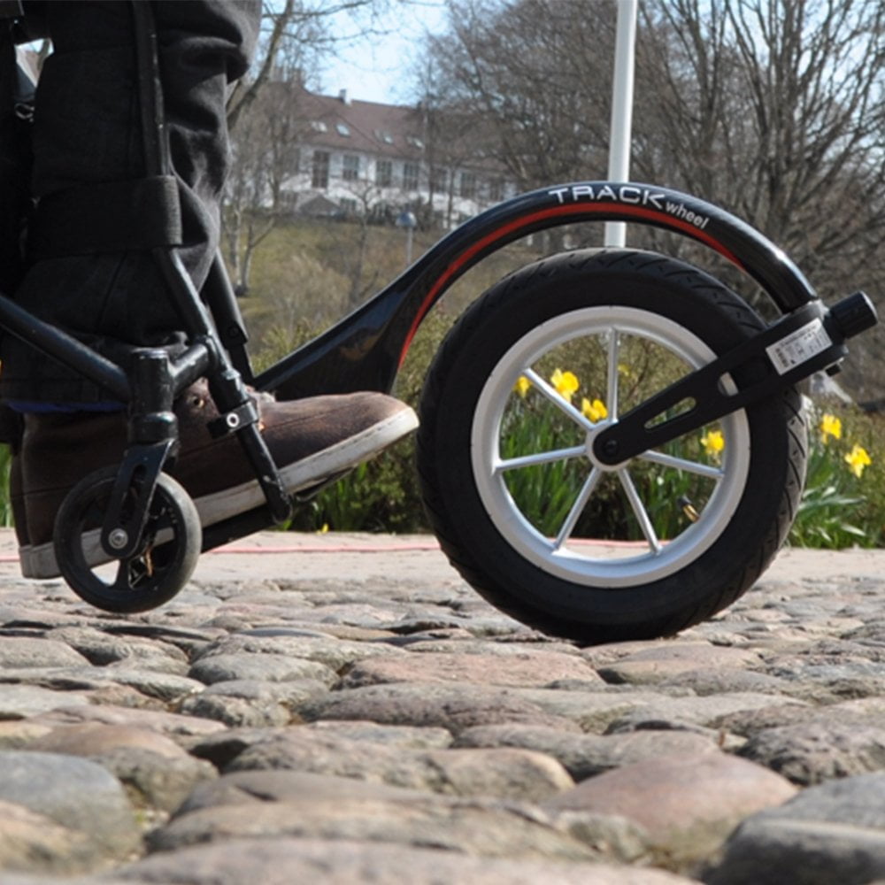 Rolling resistance is noticeably reduced, and as a result, you can enjoy more speed, comfort and manoeuvrability when pushing! Once your TRACK WHEEL has been correctly adjusted to fit your wheelchair, it can be fastened within a few short seconds!