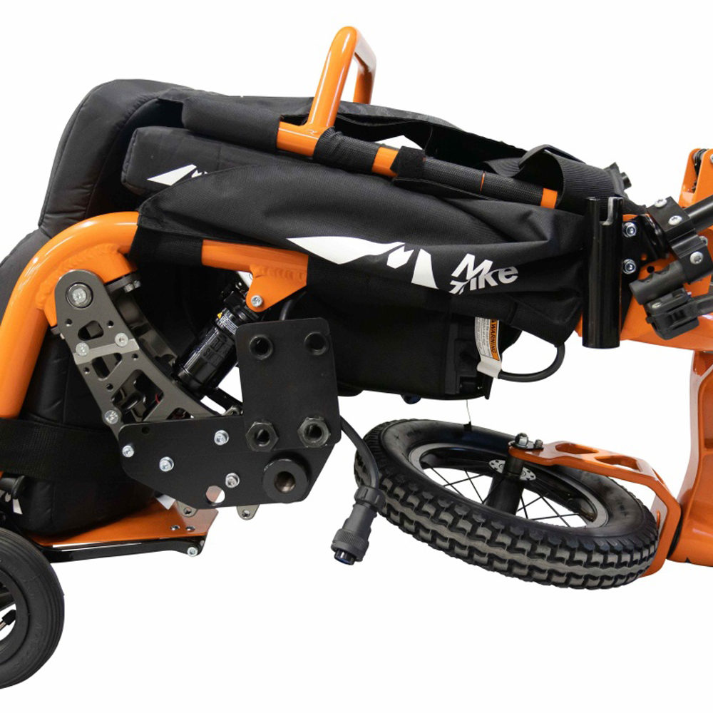 The SDMotionTrike is easy to use, can be folded into a cube and has quick release wheels for easy transport, it weighs 37 kg (without battery) which is light for an electric wheelchair.