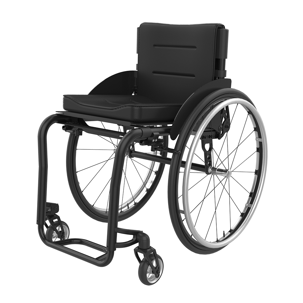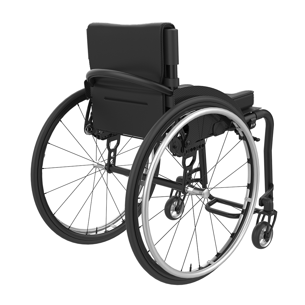 Highly adjustable mid-range active wheelchair.