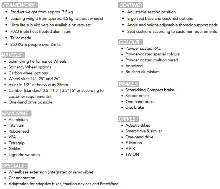 With their ultra high level of customisation and attention to detail, Schmicking has become synonymous with the finest wheelchairs and handcycles on the market.
