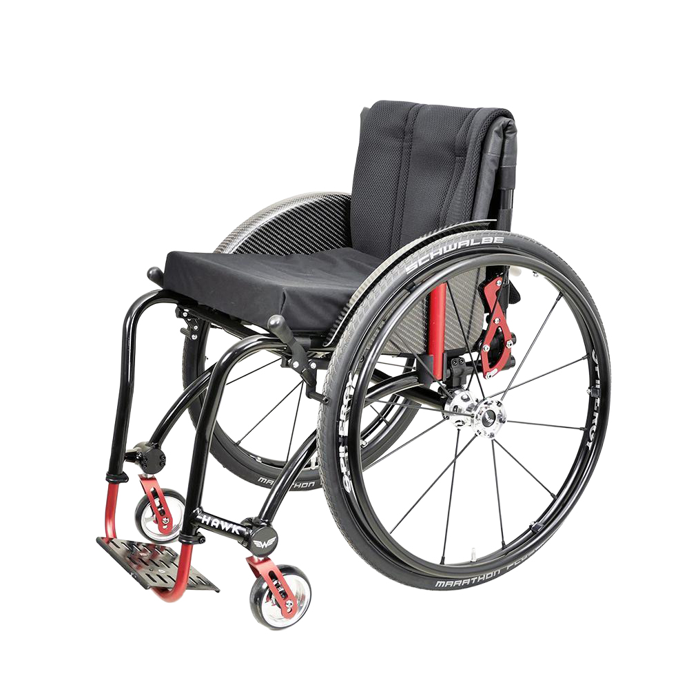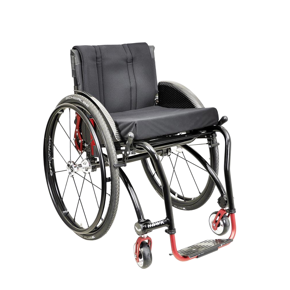 The HAWK is a compact and sturdy wheelchair for active use. It comes with a solid frame, an ergonomic seat, an impressive drivability, and a vast number of customization options. It is adjustable to fit any wheelchair user’s dreams and challenges.